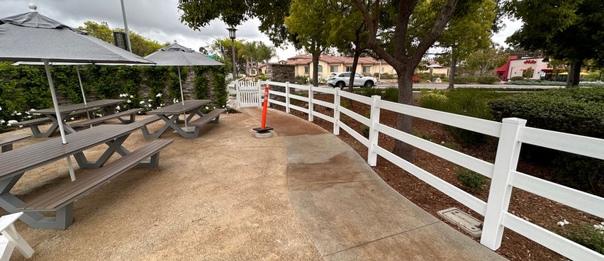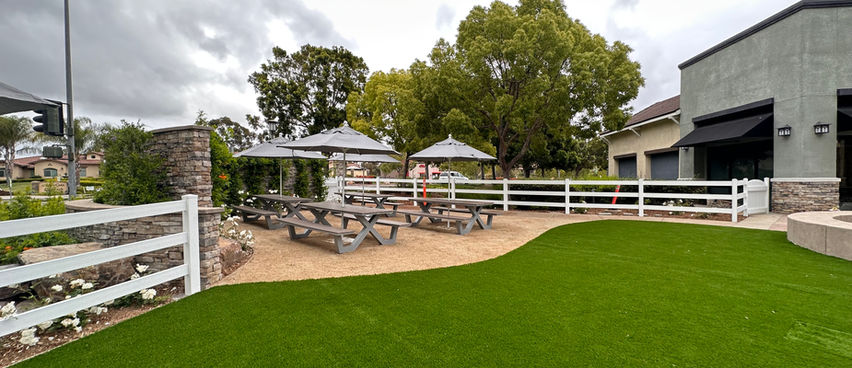 This transformative project revitalized the outdoor spaces at 4S Commons Town Center. Our work included the meticulous demolition of an outdated water feature, pathways, seating areas, lighting, and landscaping. In their place, we installed a vibrant synthetic turf playground, complemented by a thoughtfully designed seating area set on compacted decomposed granite. The refreshed landscaping adds a touch of natural beauty, all enclosed by a clean and durable white vinyl fence. To meet fire code standards, we crafted custom steel gates seamlessly paint-matched to the surrounding design. The result is a modern, inviting outdoor space that enhances the community experience.